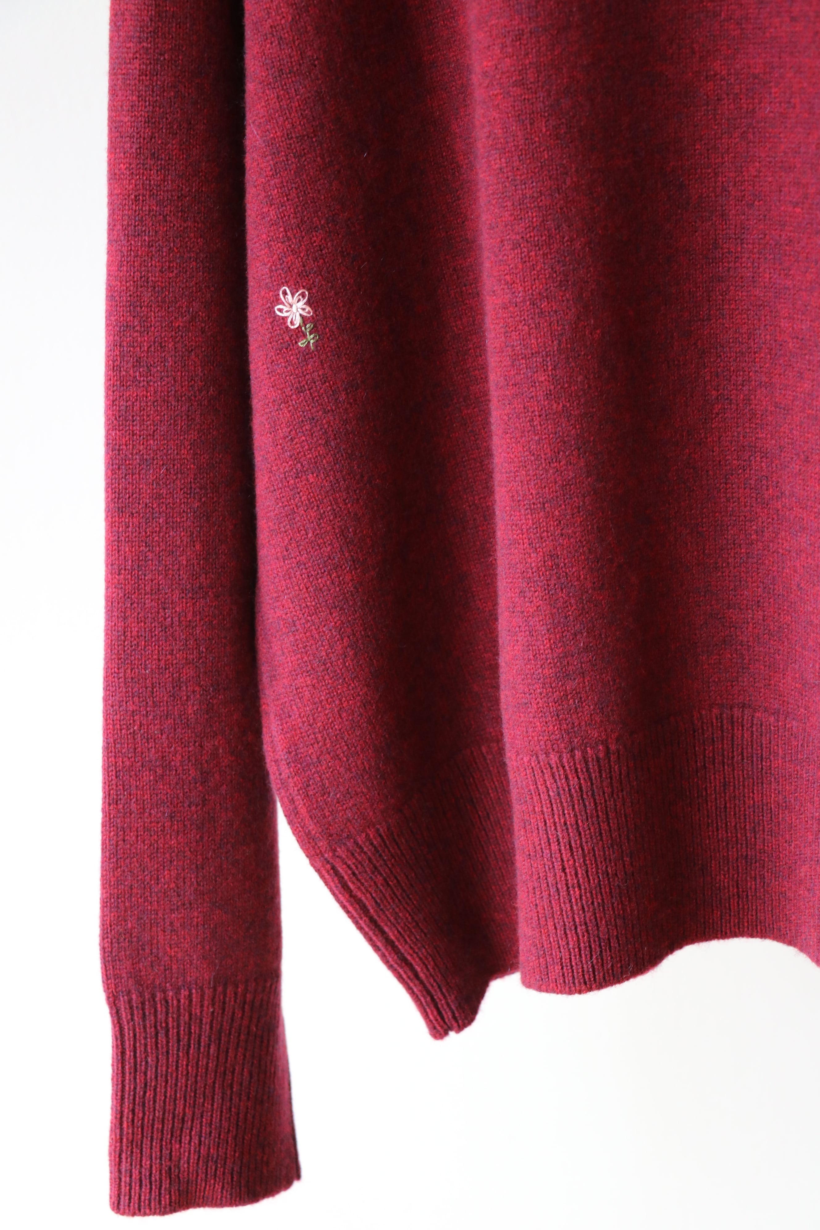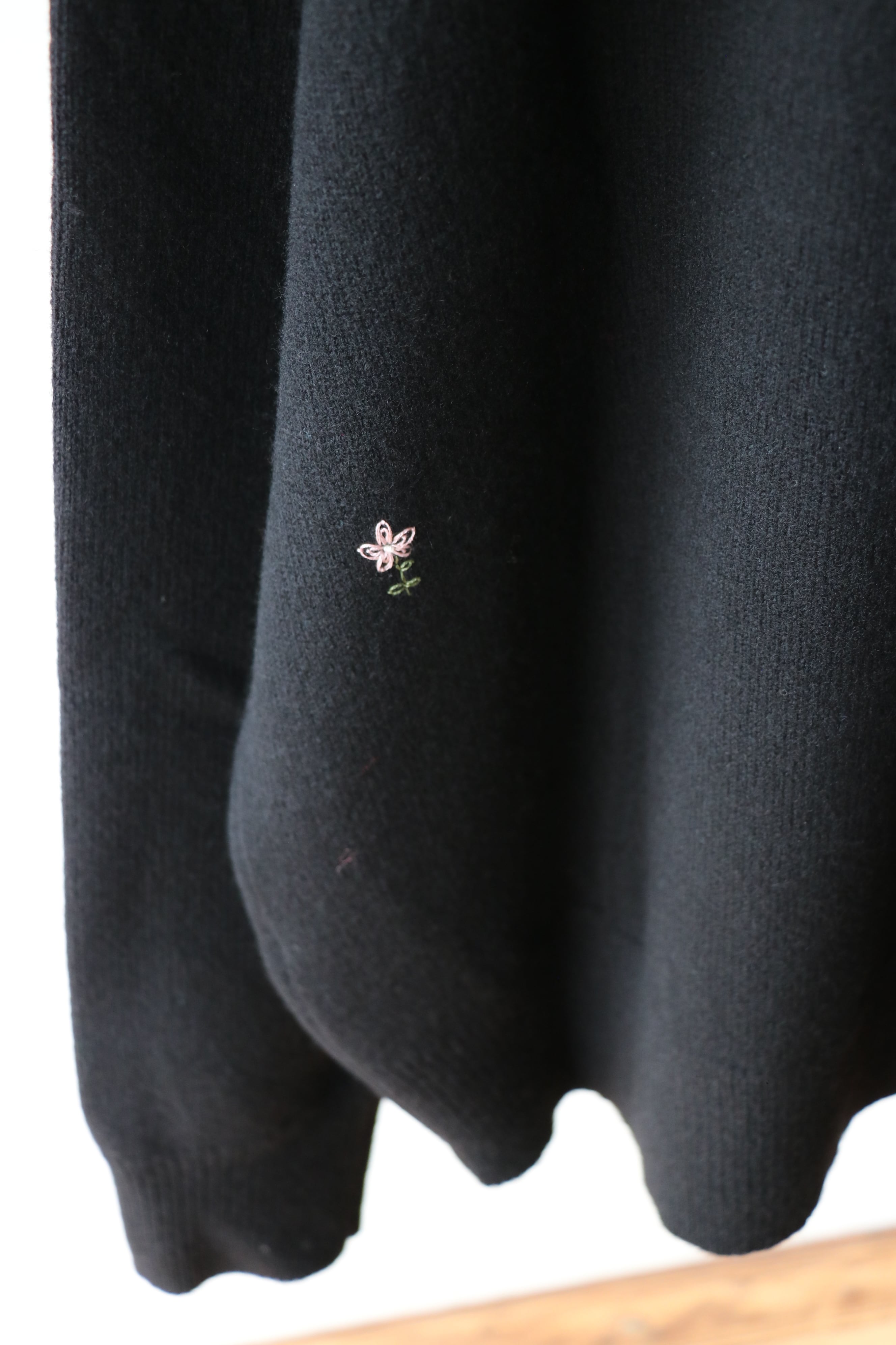 カシミヤ混の糸を使用、天竺編み、左脇後に花の手刺繍が入った