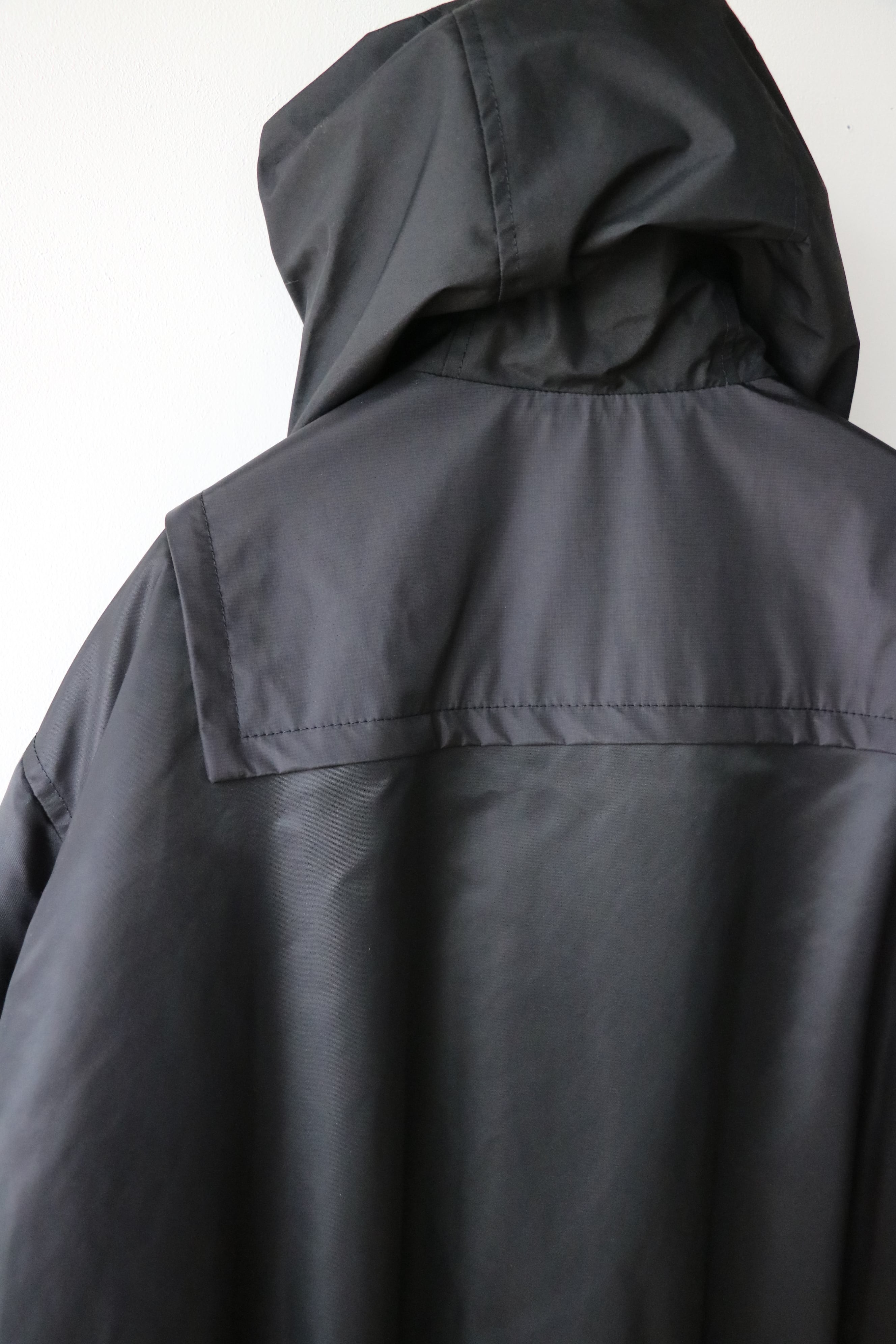 フロント部分にポケット2ヶ所、ユーティリティポケット1ヶ所、内側ジップポケット1ヶ所。 裾部分にはアジャスター付きドローコードを配置し、シルエット変更が可能。