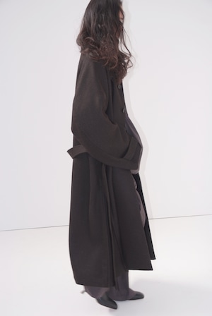 身体全体を包み込むようなシルエットが特徴のバルカラーコート。