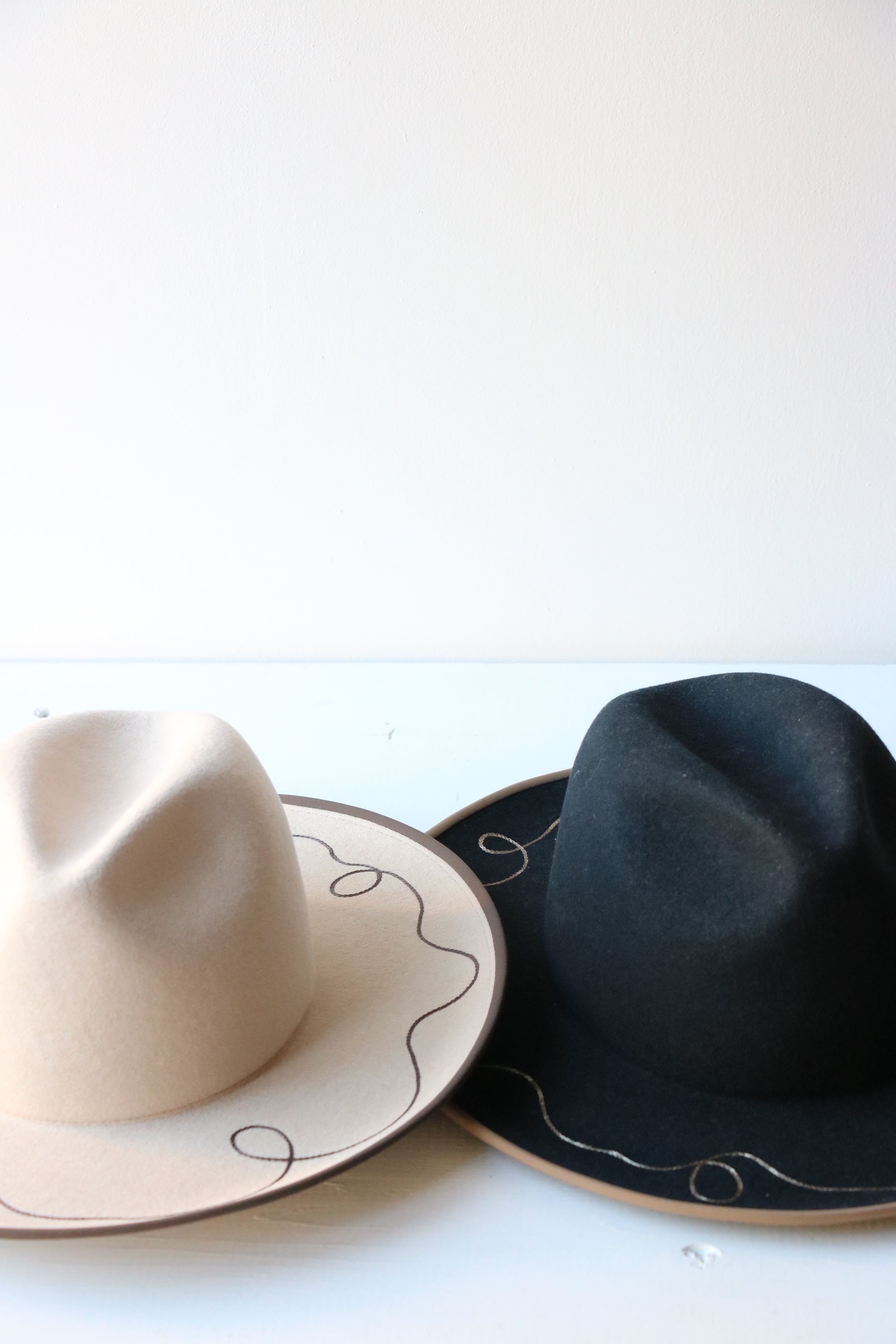 装飾は省きながらも、ブリムには変則的なチェーンステッチを施すことで遊びの利いたデザインになっています。