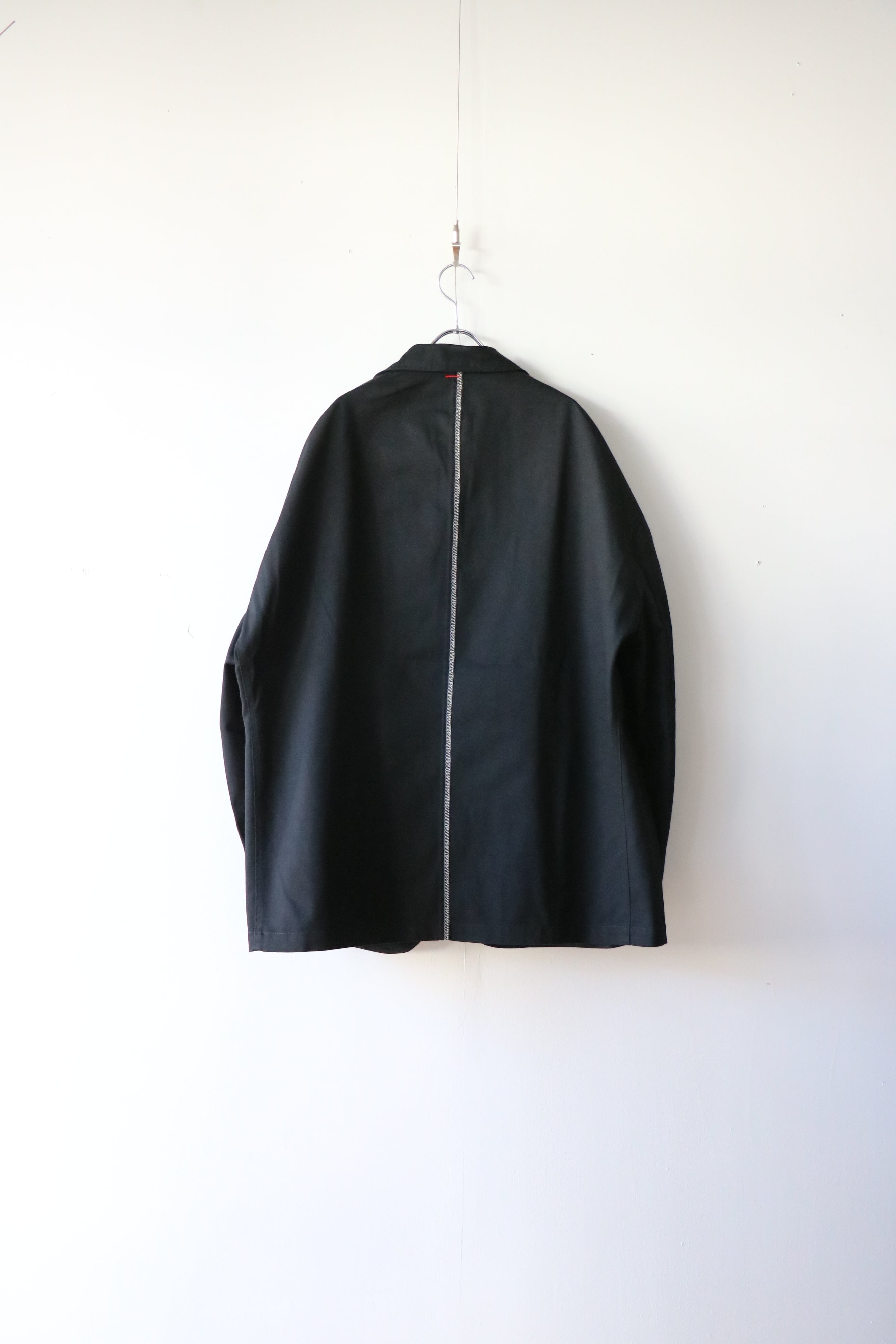 肘下まで落ちるドロップショルダーや、ゆったりとした身幅、衿を立てても着られる独自のパターンなど、もとのディテールはそのままに、より軽くラフに羽織れる仕様へとアップデートしている。