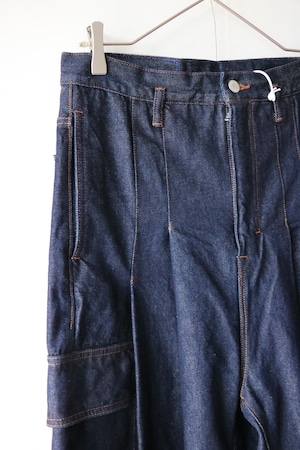 カーゴパンツをベースにしたディテールを落とし込み、膝元には2本ずつタックを入れることでより立体感と動きやすさを追加しています。