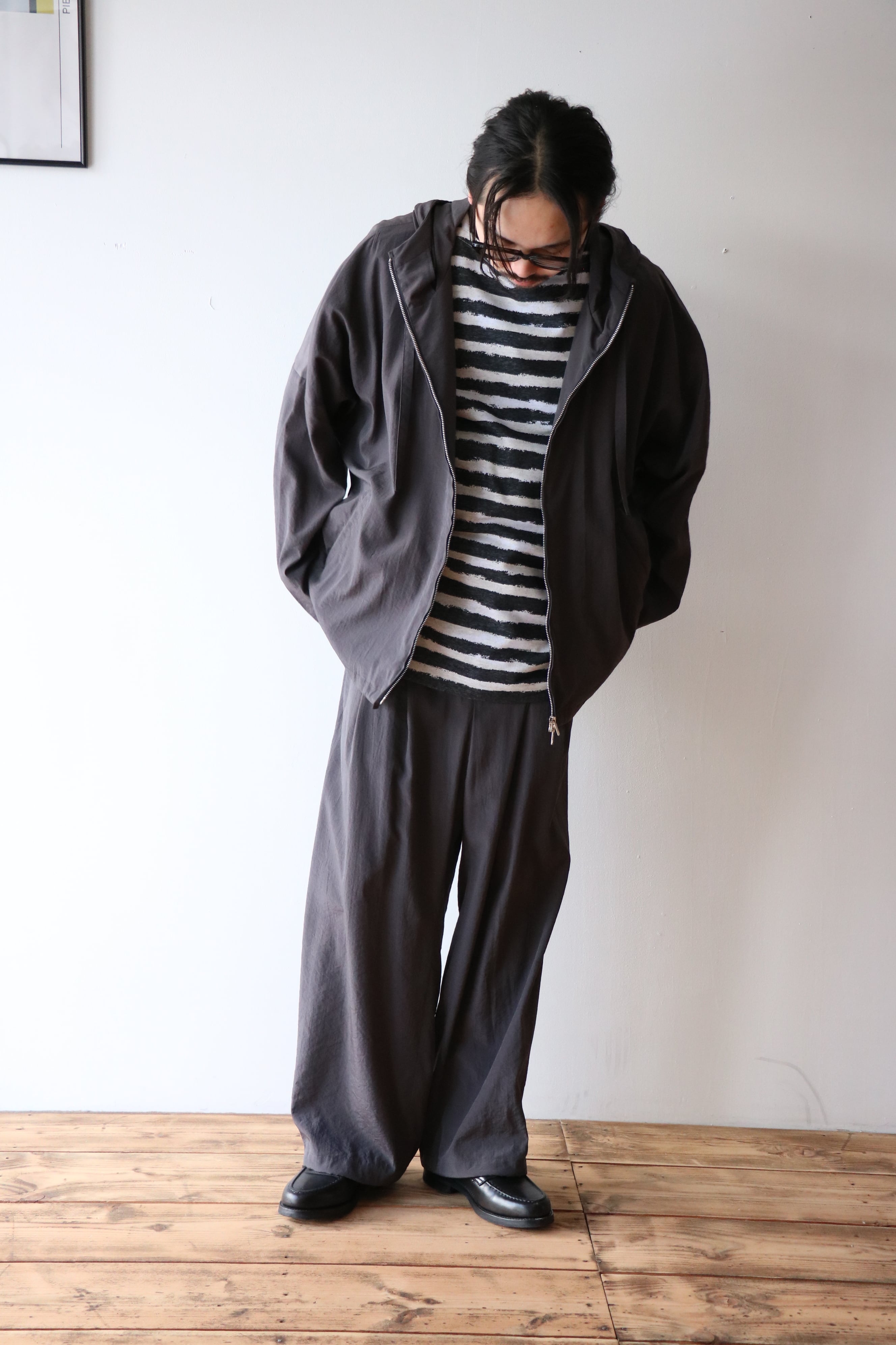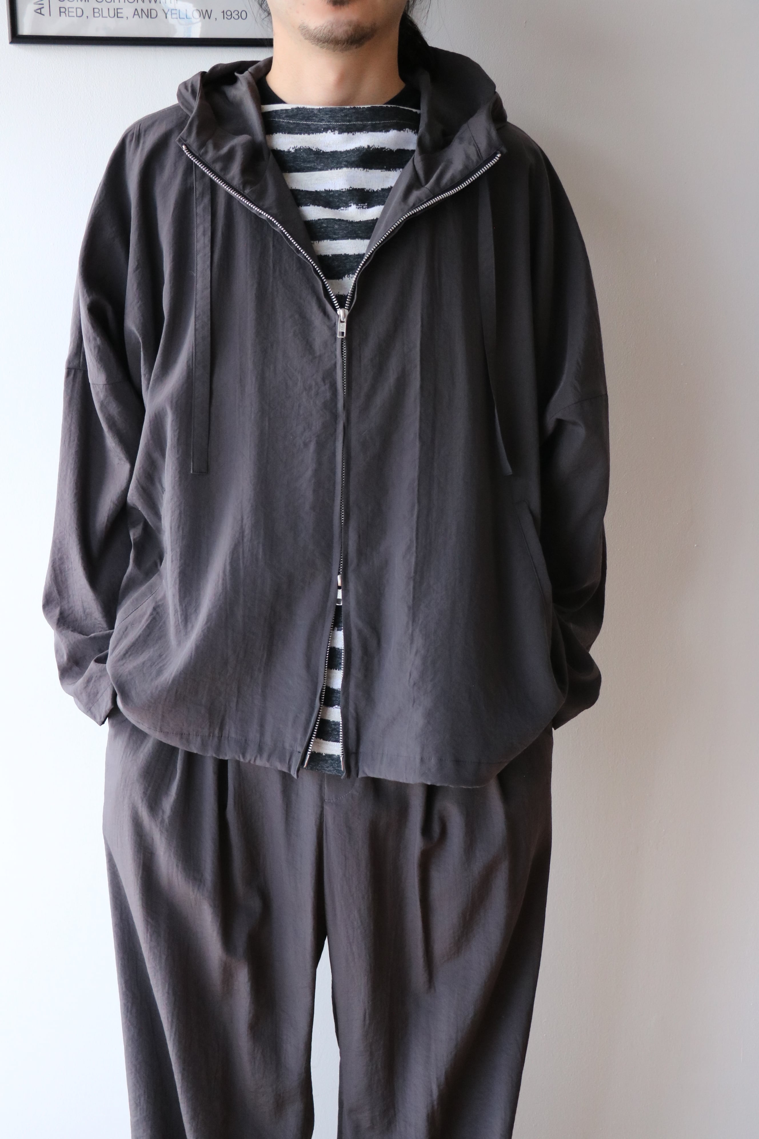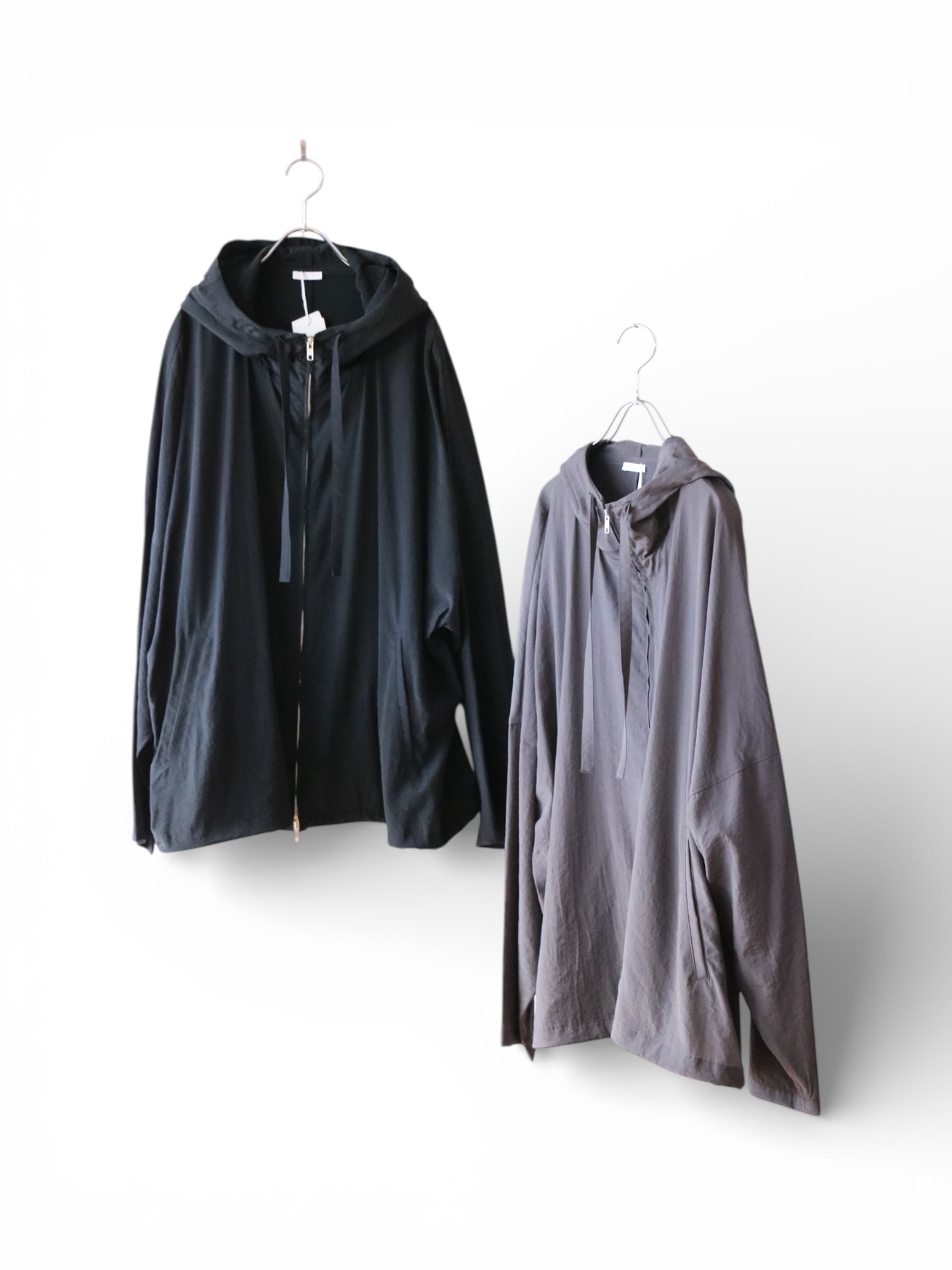 生地の薄さも相まってシーズンにより イン、アウト共に活用可能です。フード部分は 1 枚地で、生地分量により溜まり感が出ます。