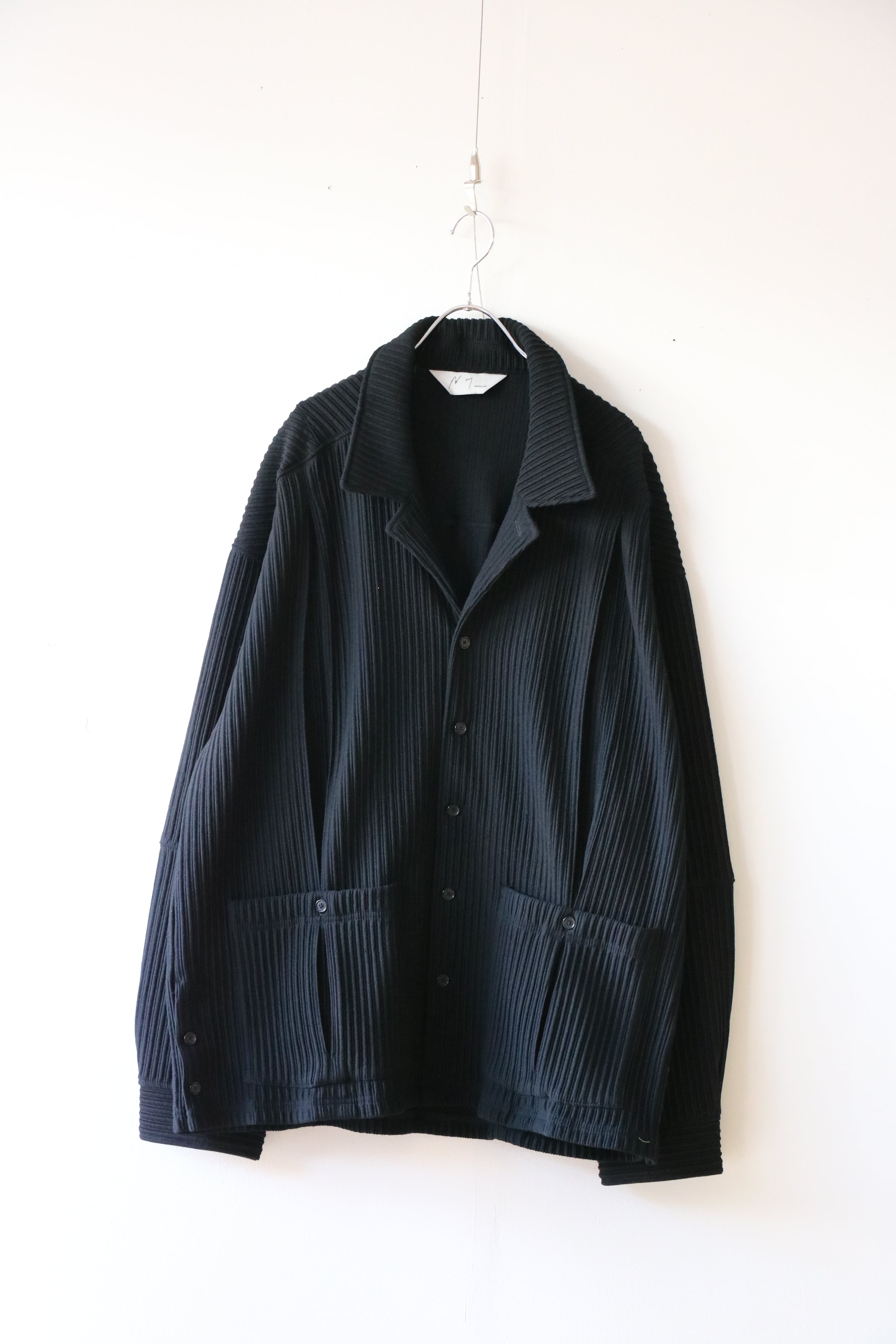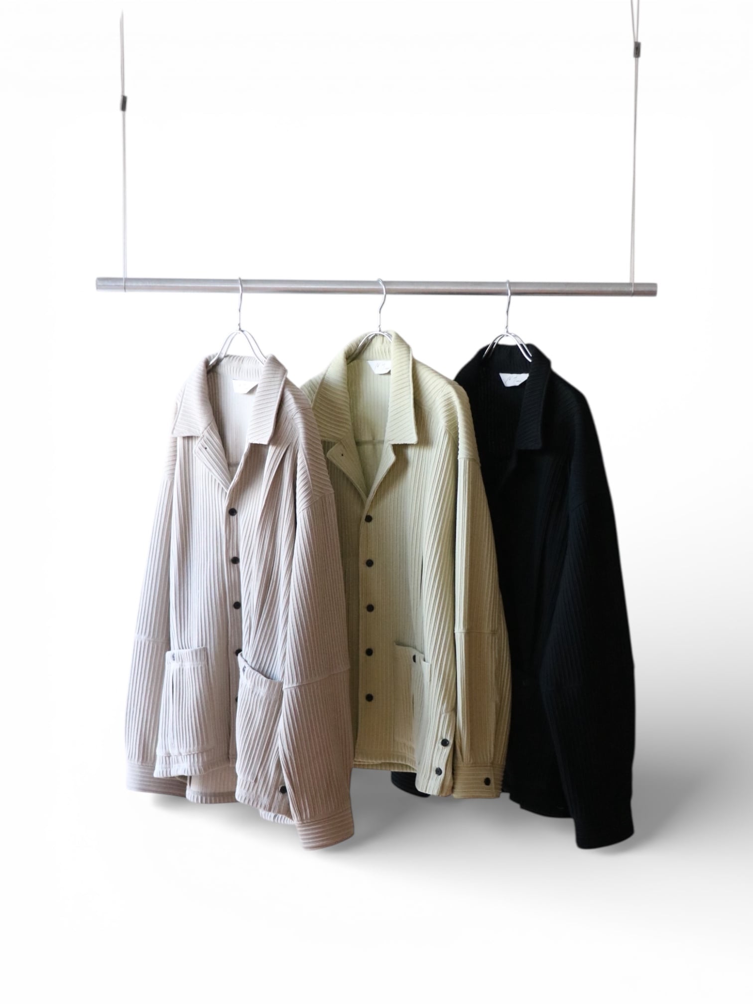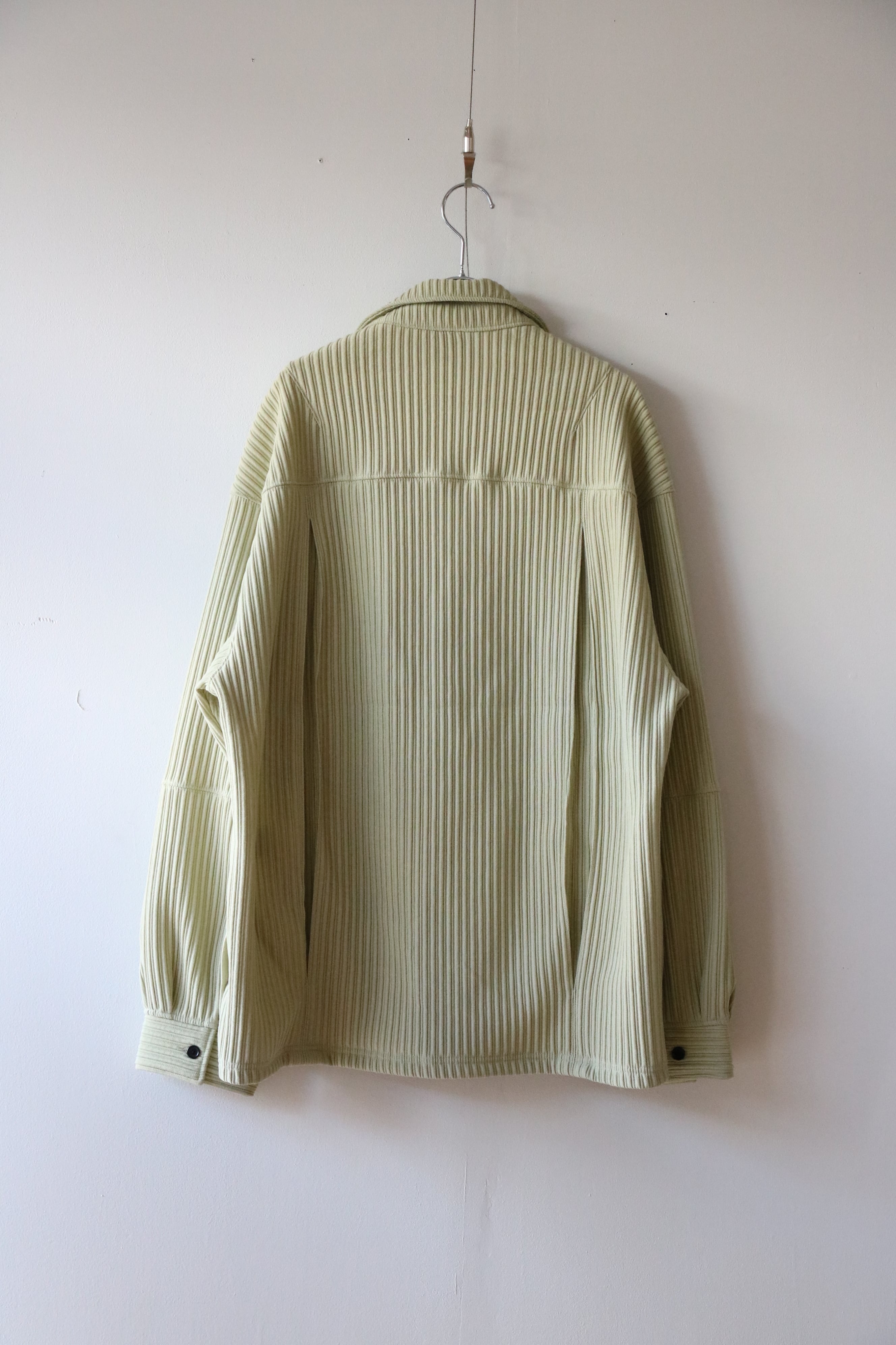 畝をストライプに見立てながら、立体感の強い生地に合わせて形状はシンプルに設計。シャツとカバーオールの間を取り、羽織りとしてもお使い頂ける量感を狙いました。