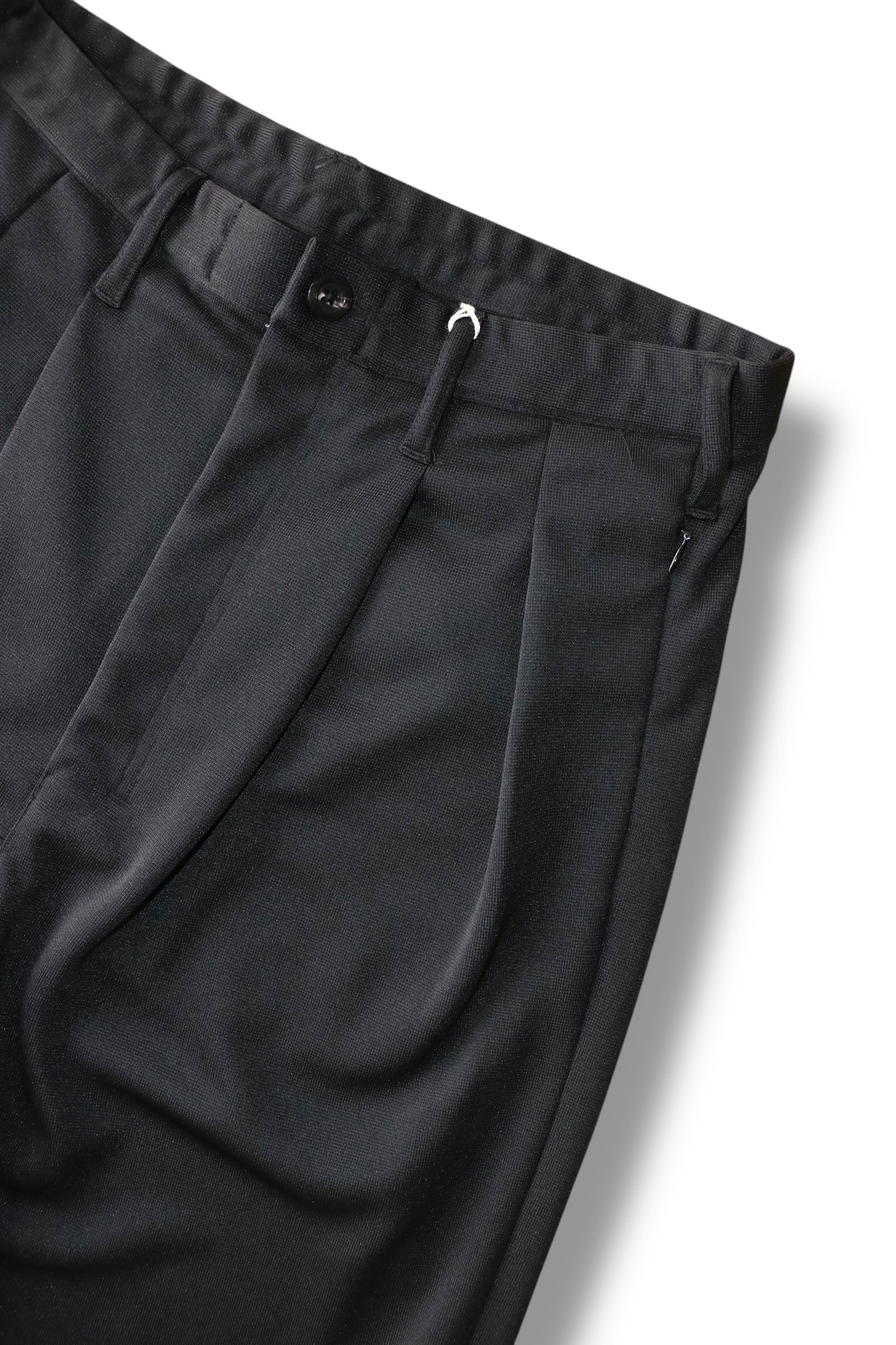 伸縮自在な素材感に対し、あたかもスラックスを