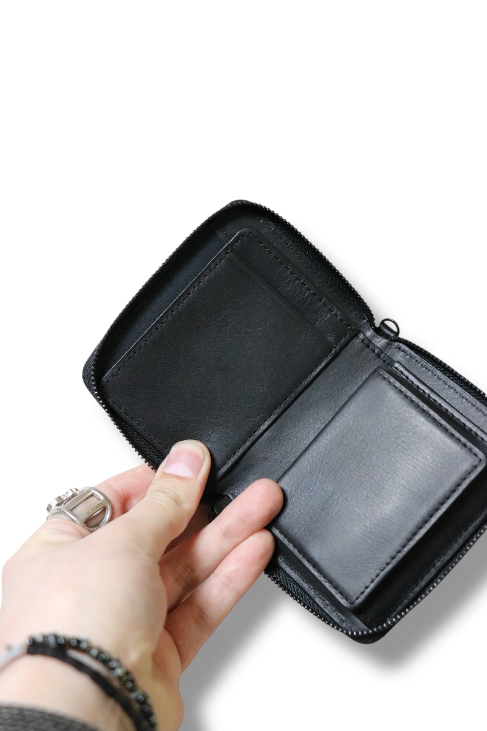 手のひらサイズのコンパクトなラウンドミニマルウォレットです。