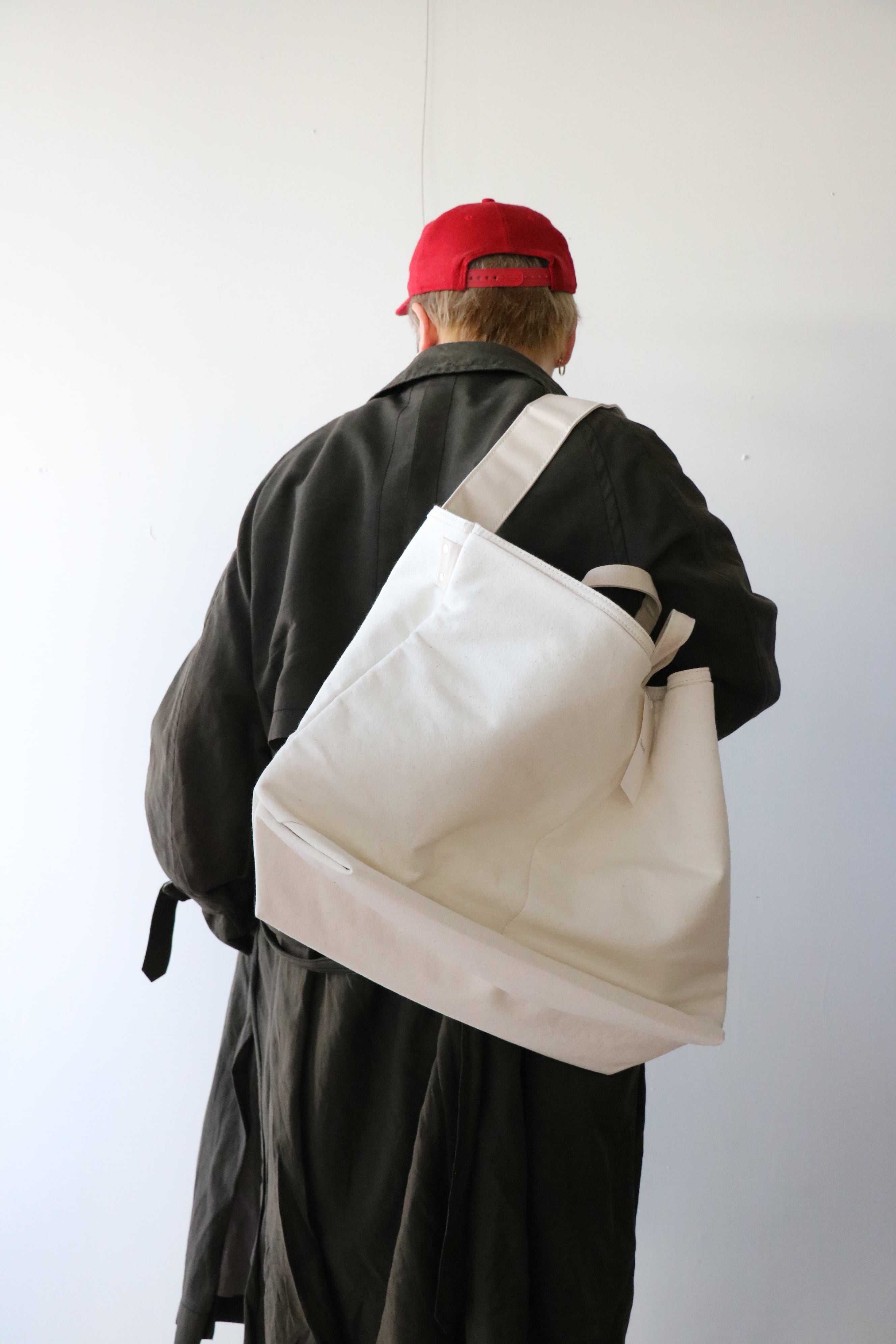 トートとしての手提げや肩掛けでも良し、ボリュームを