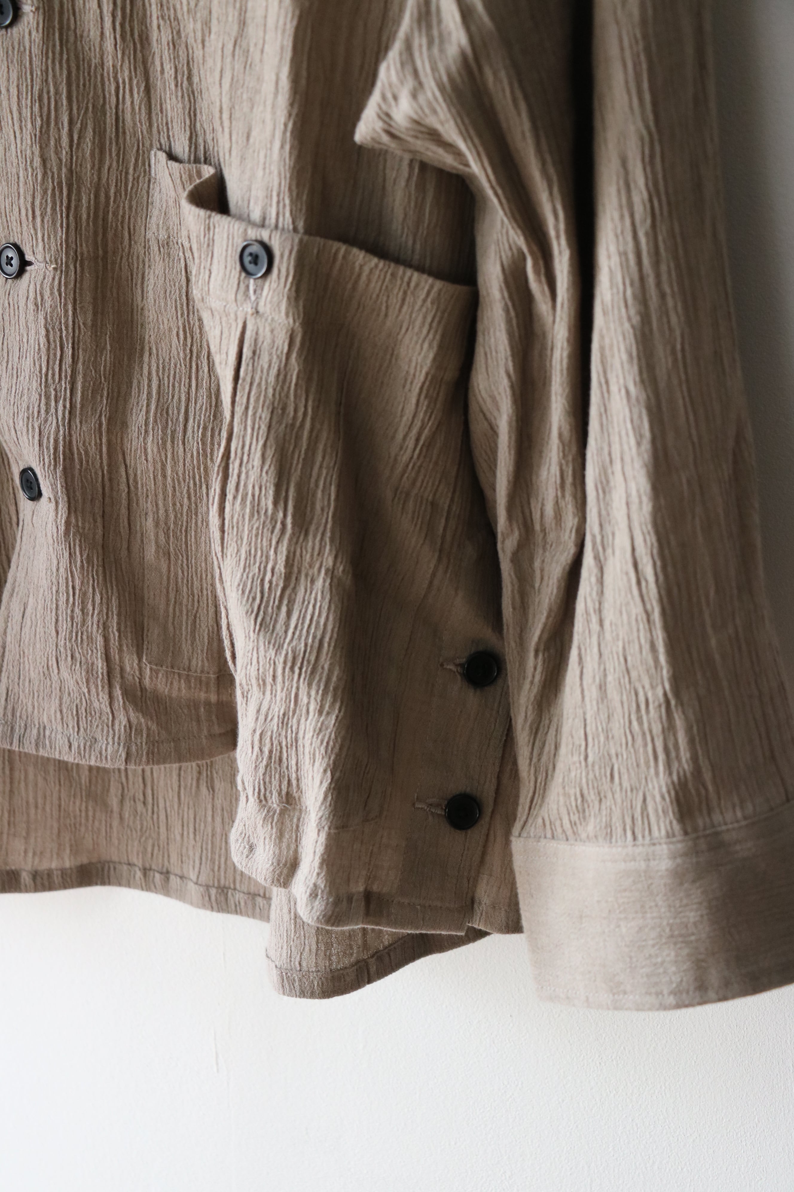 コットンリネンのクレープで製作したシャツジャケット。