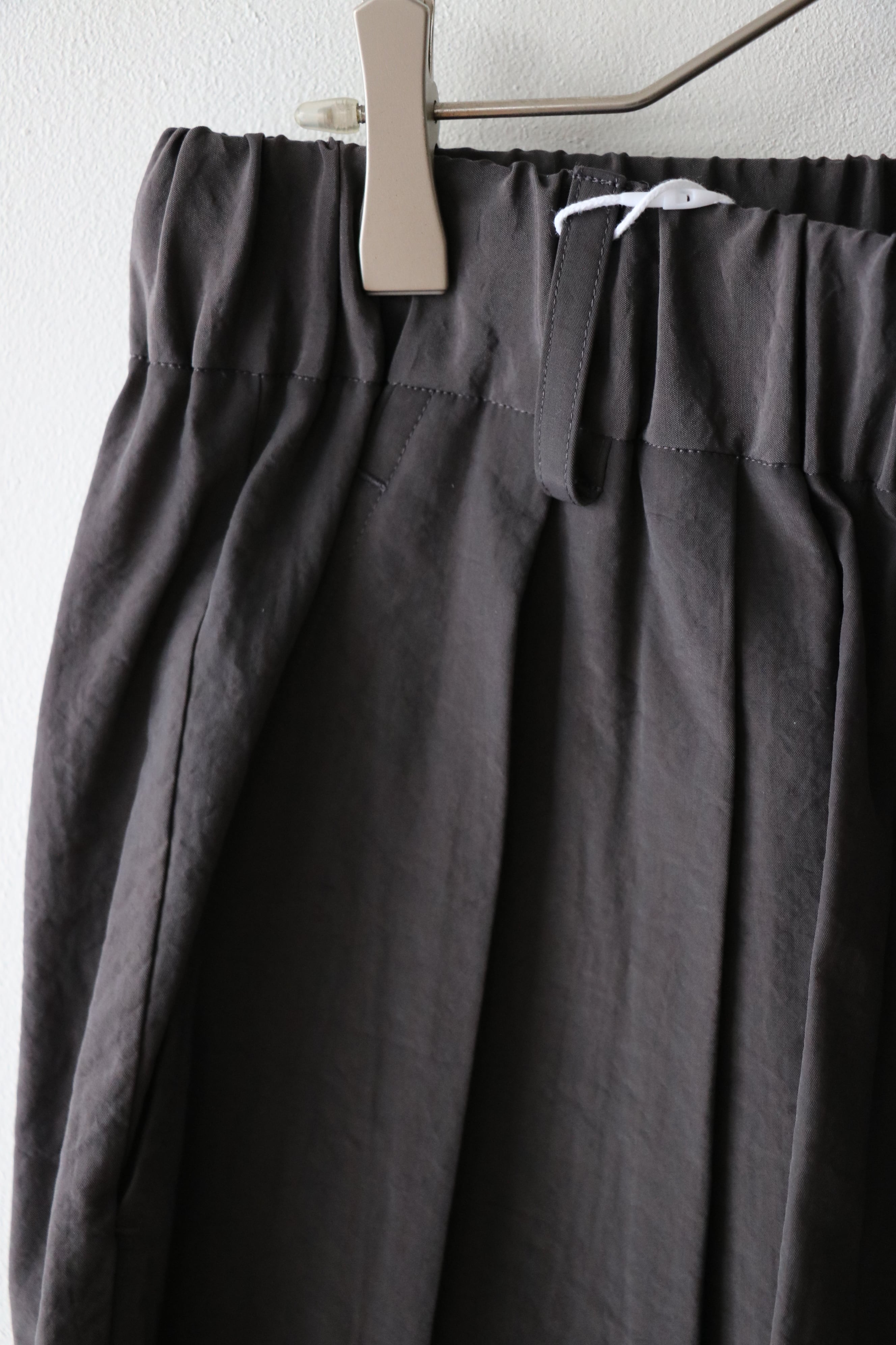 ウエストはイージー仕様の為、膝丈ほどのレングスと相まってリラックス感があります。