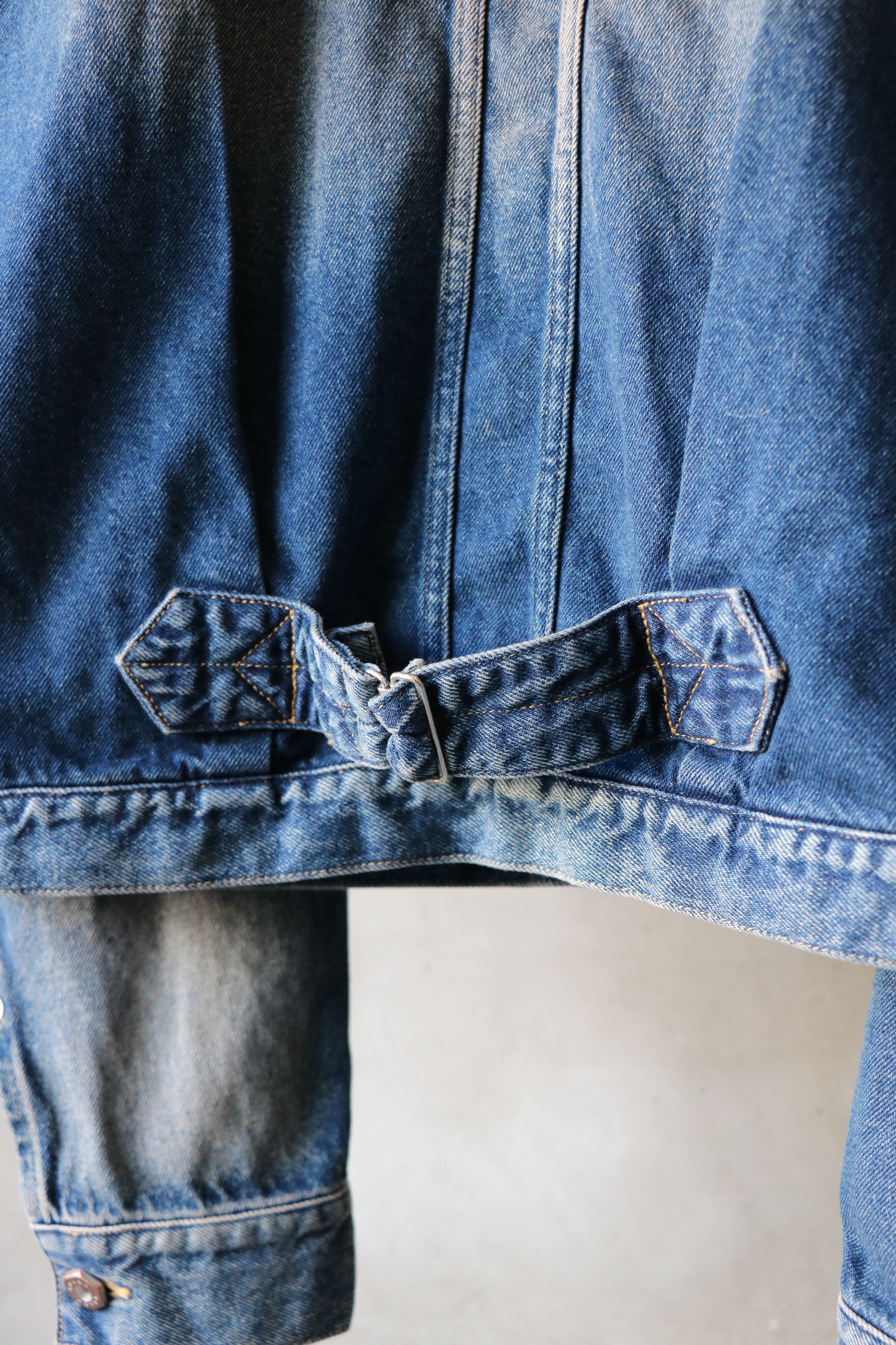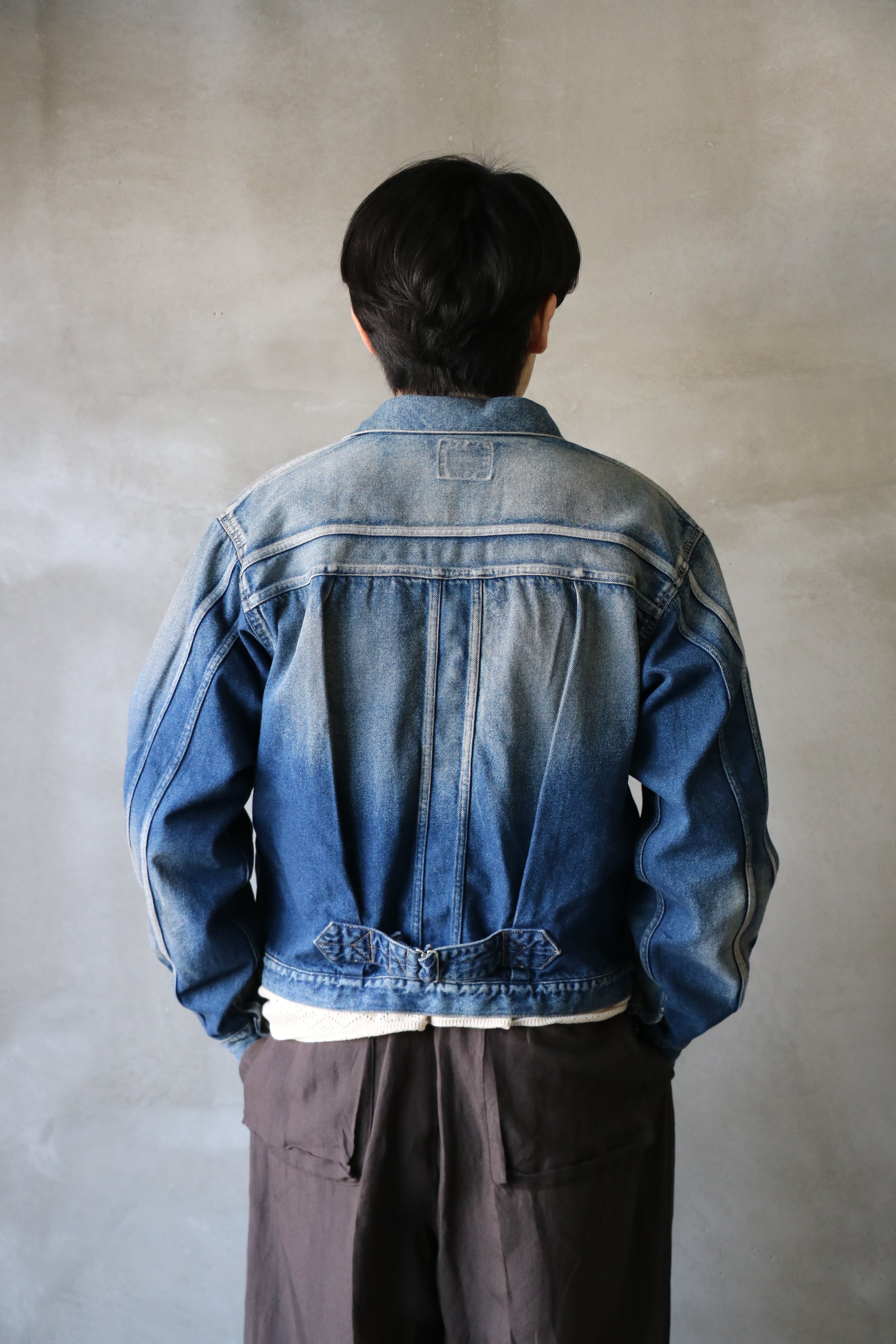 1STタイプのデニムジャケットをベースに2重のTバックの切り替え、胸ポケットが特徴のデニムジャケット。